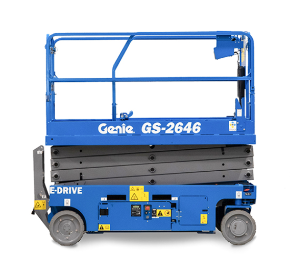 CÔNG TY CỔ PHẦN THIẾT BỊ CƠ GIỚI 5A xin giới thiệu đến quý khách hàng một trong những sản phẩm xe nâng người cắt kéo đến sử dụng động cơ điện đến từ hãng sản xuất Genie của Mỹ: Genie GS-2646